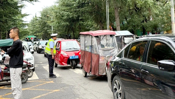 同时,结合中学生的出行特点,用通俗易懂的语言“现场开讲”,深入浅出地讲解驾乘摩托车、电动车佩戴安全头盔,驾乘汽车系好安全带的重要性。对发现骑乘电动车未戴安全头盔交通违法行为,及时上前劝导和纠正,并耐心讲解其危害性,督促他们立即改正。这种“边宣传、边提醒、边教育”的方式,让交通安全知识更加入脑入心。为青春的求学之路系牢“安全带”。