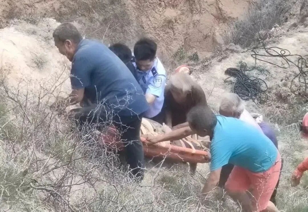 队员及村民不顾陡坡湿滑与荆棘丛生