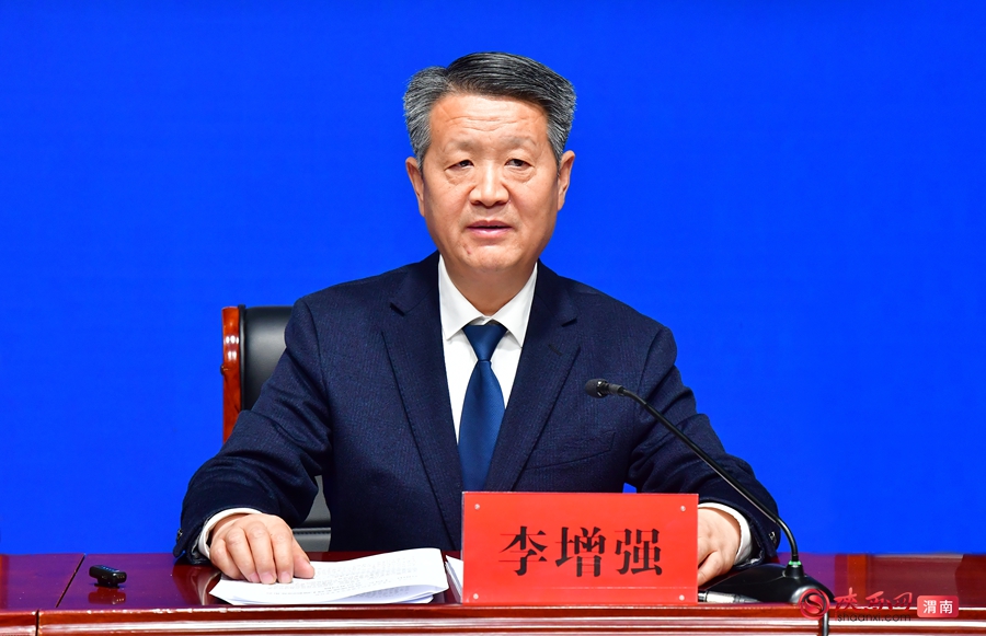 渭南市委宣传部副部长靳铭夏主持发布会。记者 罗娜 摄