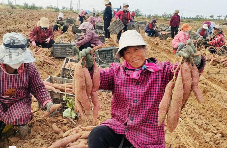 合阳县红薯喜丰收 铺就致富路。(图片来源网络)
