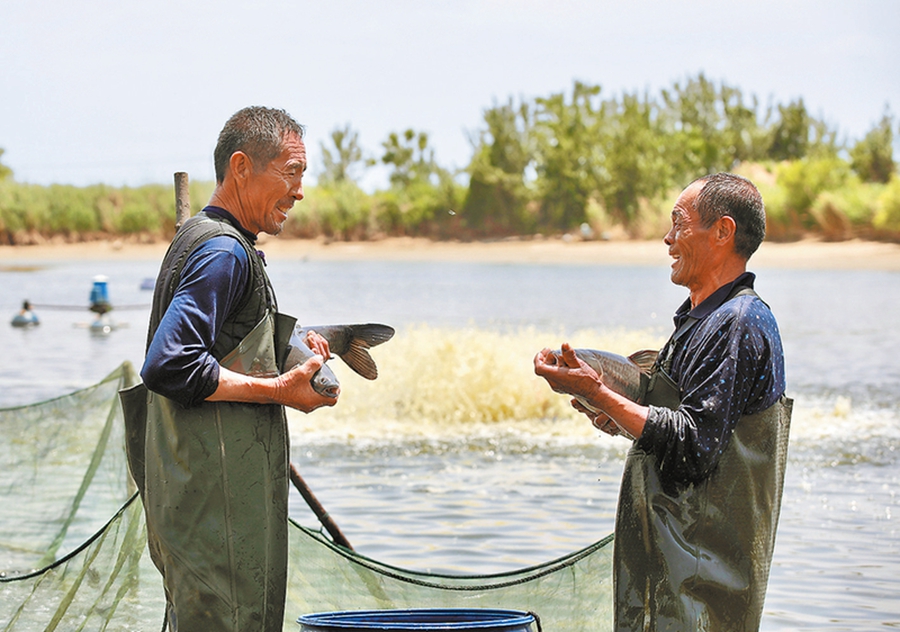 合阳县渔业养殖基地里,渔民进行捕捞。(图片来源网络)