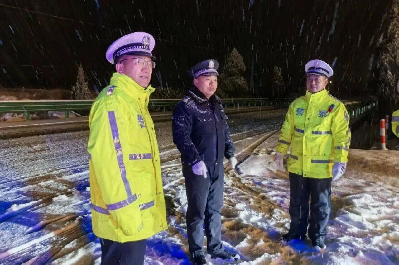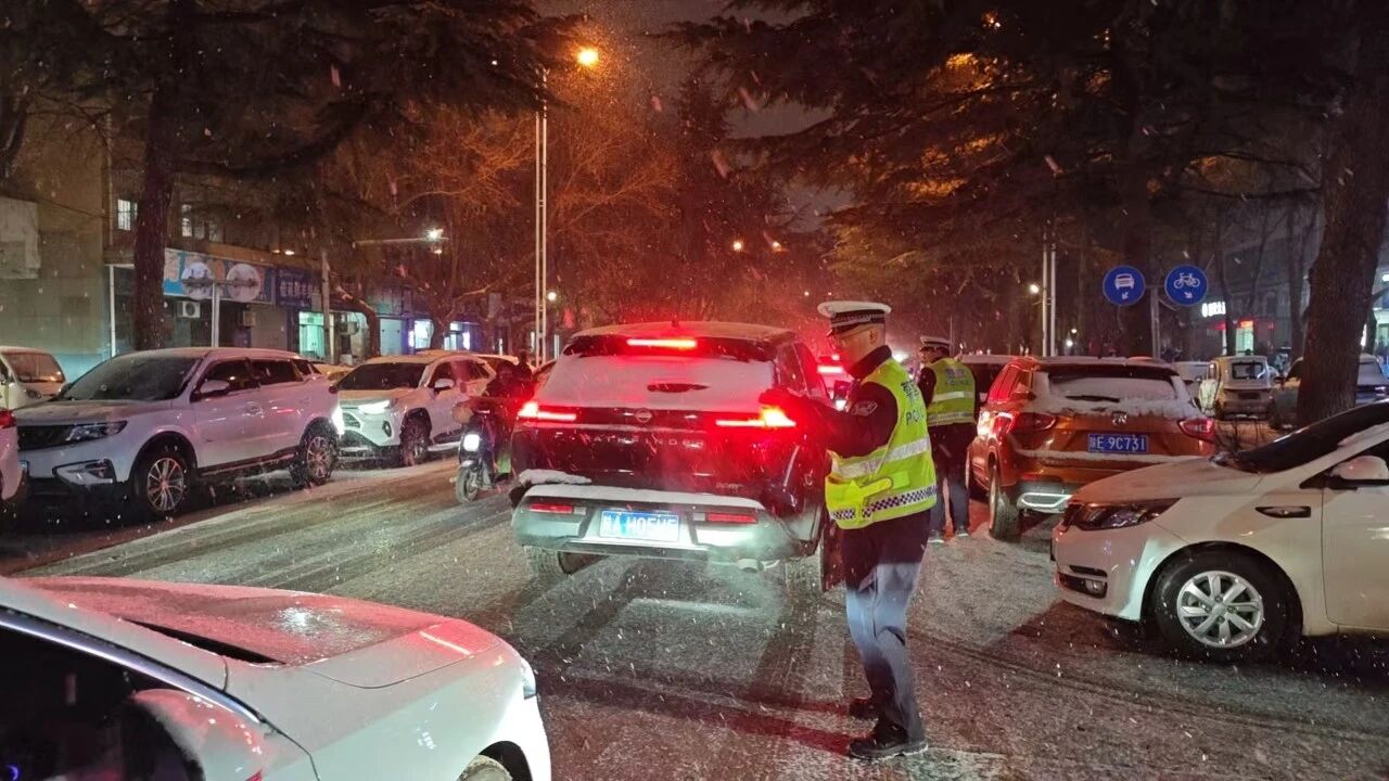 1月19日,合阳县辖区迎来降雪天气,道路积雪结冰导致交通安全风险显著上升,大队立即启动恶劣天气交通管理预案,全警以雪为令,在城区及国省道桥梁、急弯陡坡、临水临崖、易堵路段设立特岗特勤31处,全面强化道路管控,保障群众安全出行。