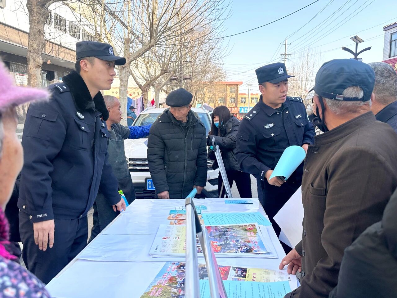春训工作开展以来,合阳县公安局黑池派出所坚持以战促训,战练结合,紧盯辖区春耕复产时间特点,聚焦年初治安防范形势,联动镇政府,组织民警深入辖区集市“摆摊设点”,利用赶集日人流密集的有利时机,开展防范电信网络诈骗与非法集资集中宣传活动。