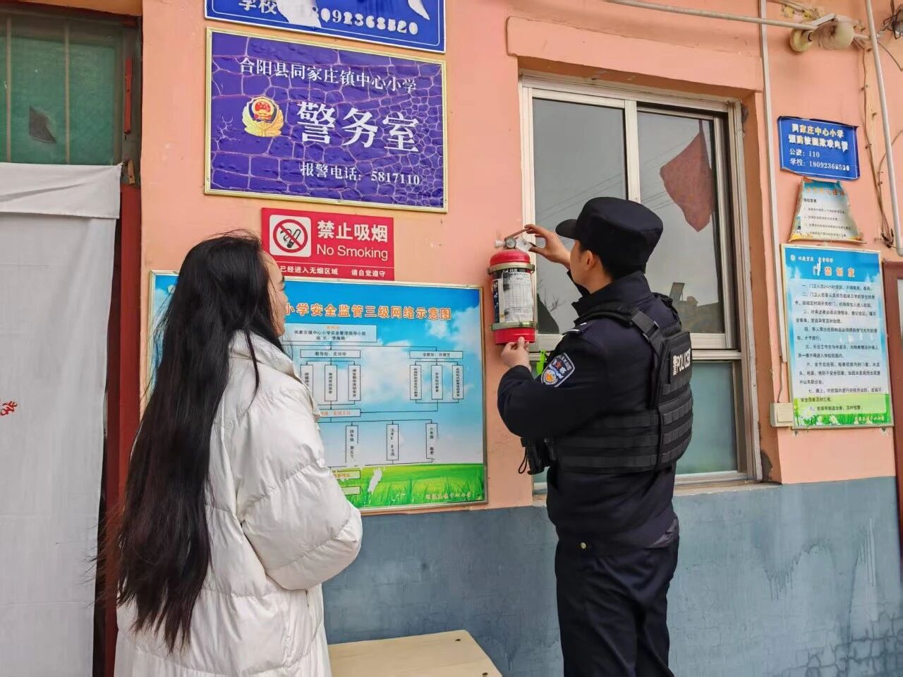 随后,民警对校园视频监控、消防器材、一键报警、安保装备等关键设施进行全面检查,现场指出问题并督促整改,严格落实 “人防、物防、技防” 建设要求。同时与校方深入沟通,细致了解校园安全管理、矛盾纠纷排查及学生思想动态,部署预防未成年人违法犯罪、校园欺凌防范等工作,商定近期开展 “法治进校园” 活动,切实提升师生法治意识与自我防护能力。下一步,同家庄派出所将持续深化护校安园行动,健全校园安全长效机制,以坚实担当筑牢校园安全 “防火墙”。