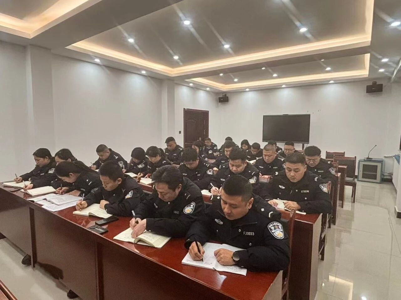坚持把政治建警摆在首位,将理论学习贯穿春训全过程。利用每日早会、每周三政治理论学习会以集中领学、个人自学、交流研讨等多种形式,组织民辅警系统学习党的创新理论及党纪警规,引导全体人员深刻领悟“十六字”总要求,在深学细悟中淬炼政治品格,不断提高政治判断力、政治领悟力、政治执行力。