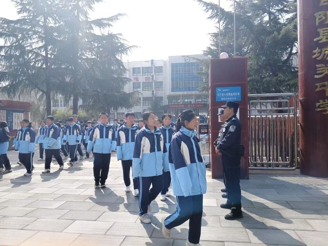 结合春季开学季特点,大队将护校工作纳入春训实战化考核内容,组织参训民辅警在城关中学、城关第二小学、城关第三小学上下学高峰时段开展定点值守、巡逻防控。民辅警严格落实“高峰护学”机制,加强校园周边可疑人员、车辆排查,畅通“护学通道”,同时向师生、家长普及防拐骗、防欺凌等安全知识,切实筑牢校园安全屏障,用“警察蓝”守护“少年志”。